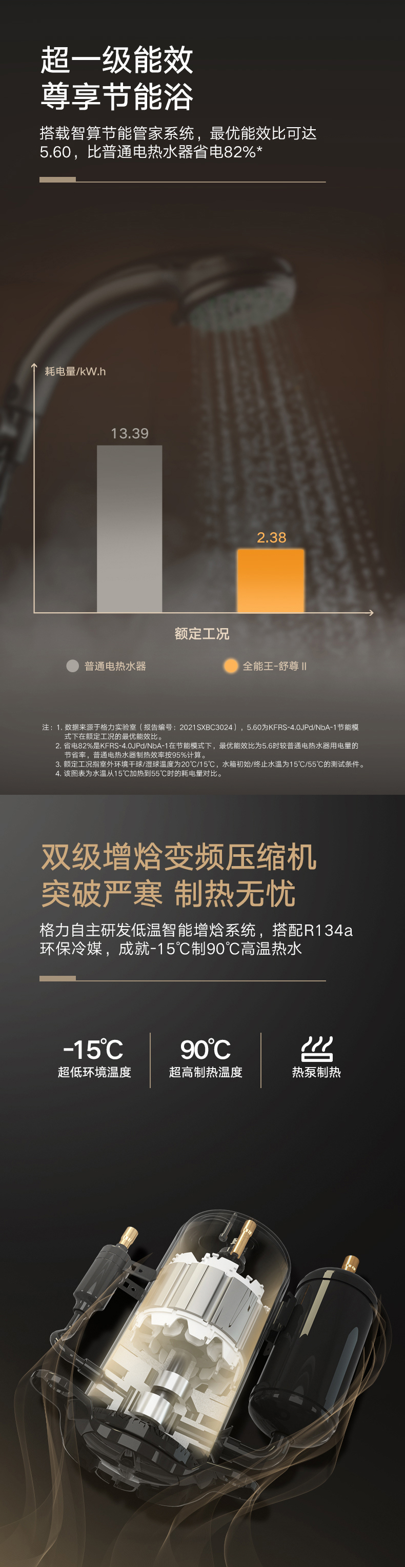 雙級增焓變頻壓縮機,-15℃制90℃高溫熱水,熱水增量90%